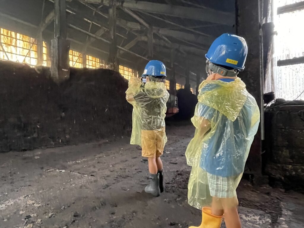 臭いにびっくりしながらも、廃棄物をリサイクルし、堆肥に変えている
